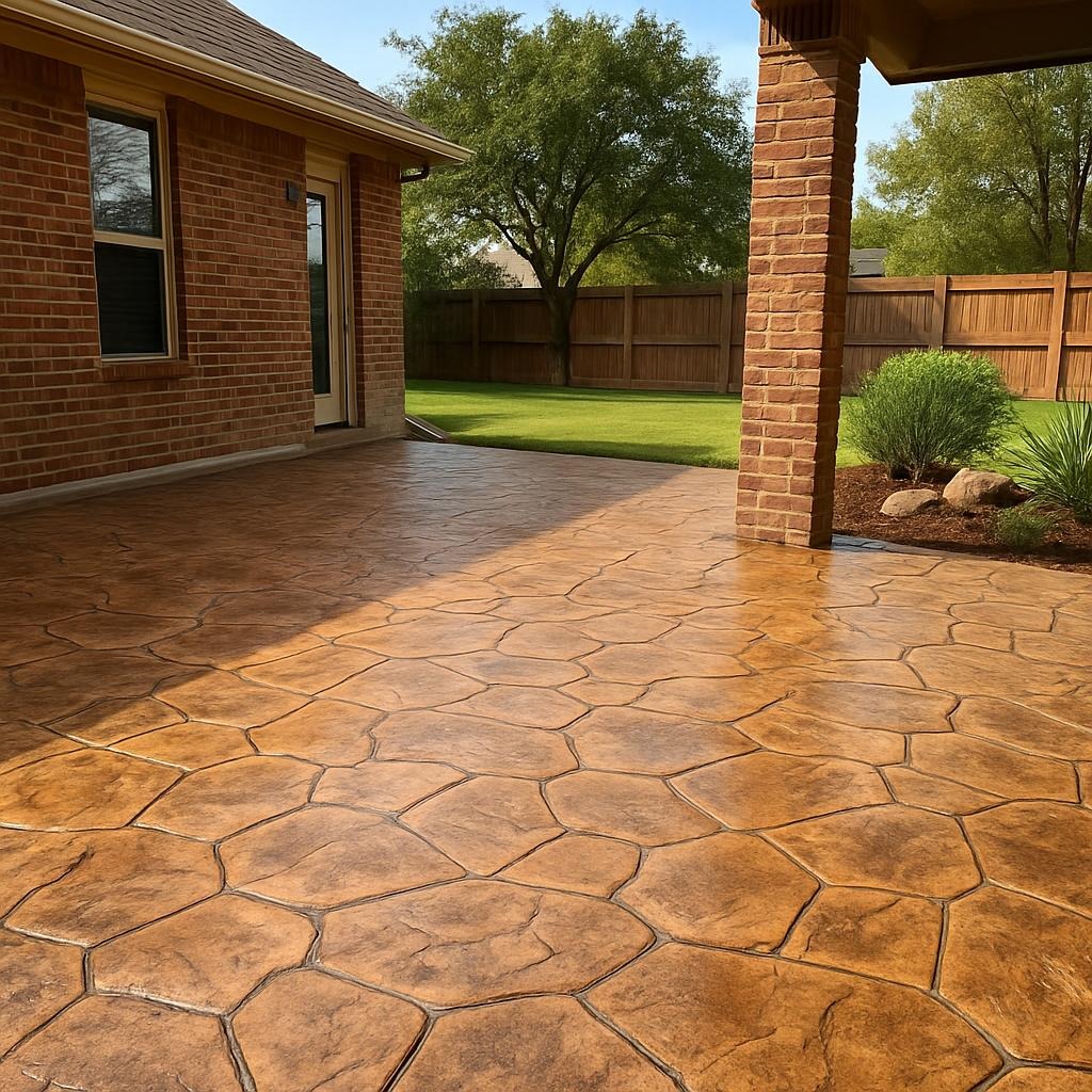 Stamped concrete is a decorative concrete finish that replicates the look of stone, brick, or wood while offering the strength and durability of concrete. It’s ideal for patios, walkways, driveways, and outdoor living spaces.